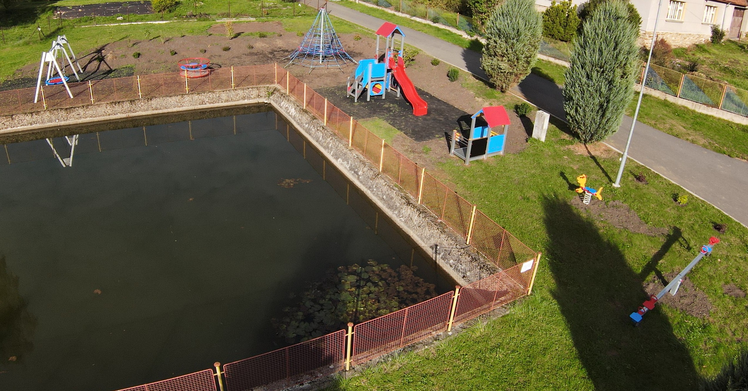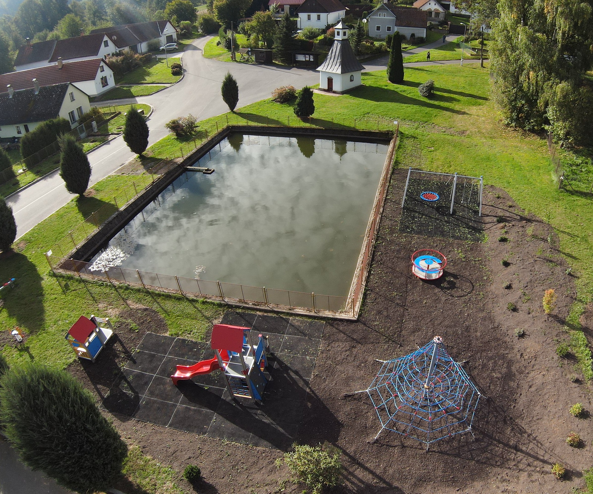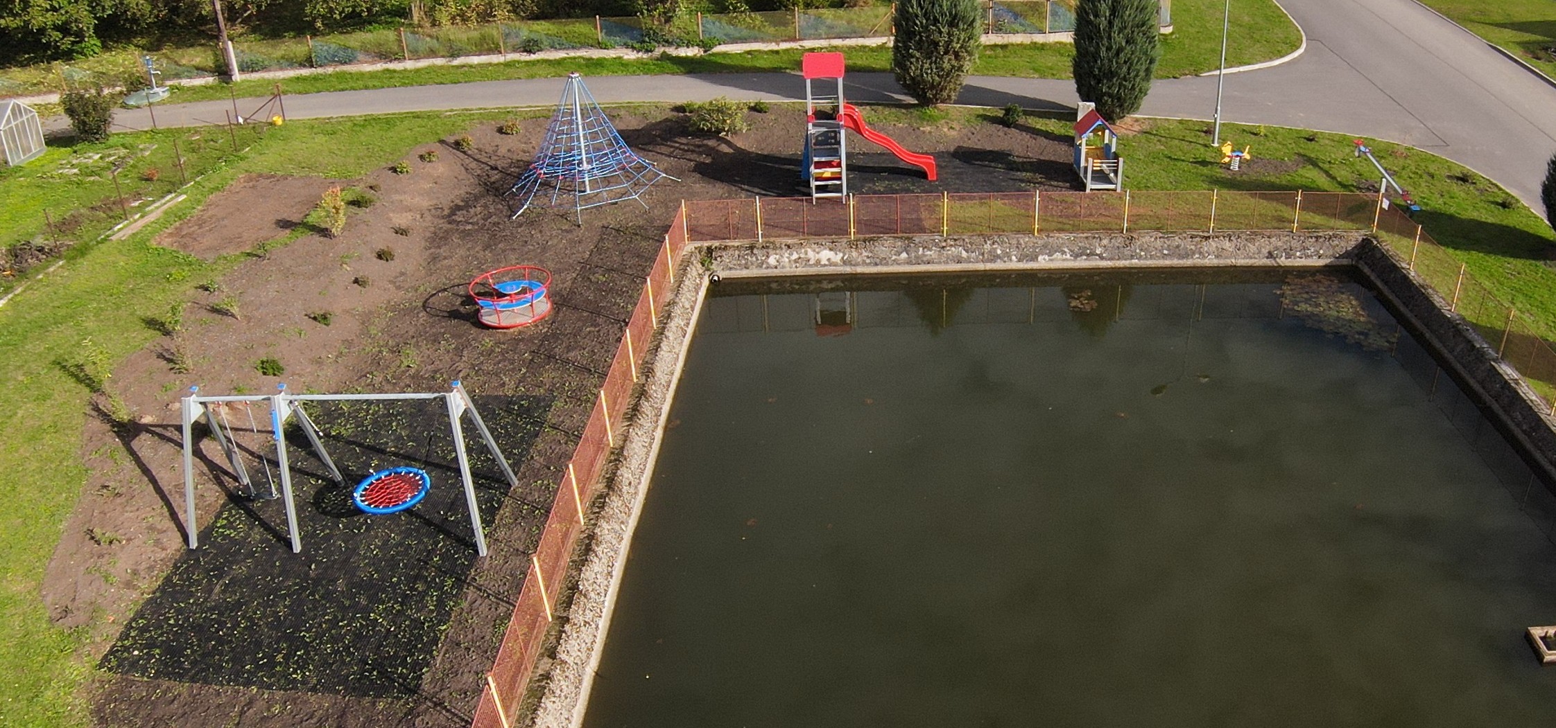 V rámci projektu bylo na návsi obce Důl vybudováno nové dětské hřiště, které je vybaveno moderními herními prvky – věžovou sestavou, lanovou pyramidou, houpačkami, kolotočem, domečkem i houpadlem na pružině.