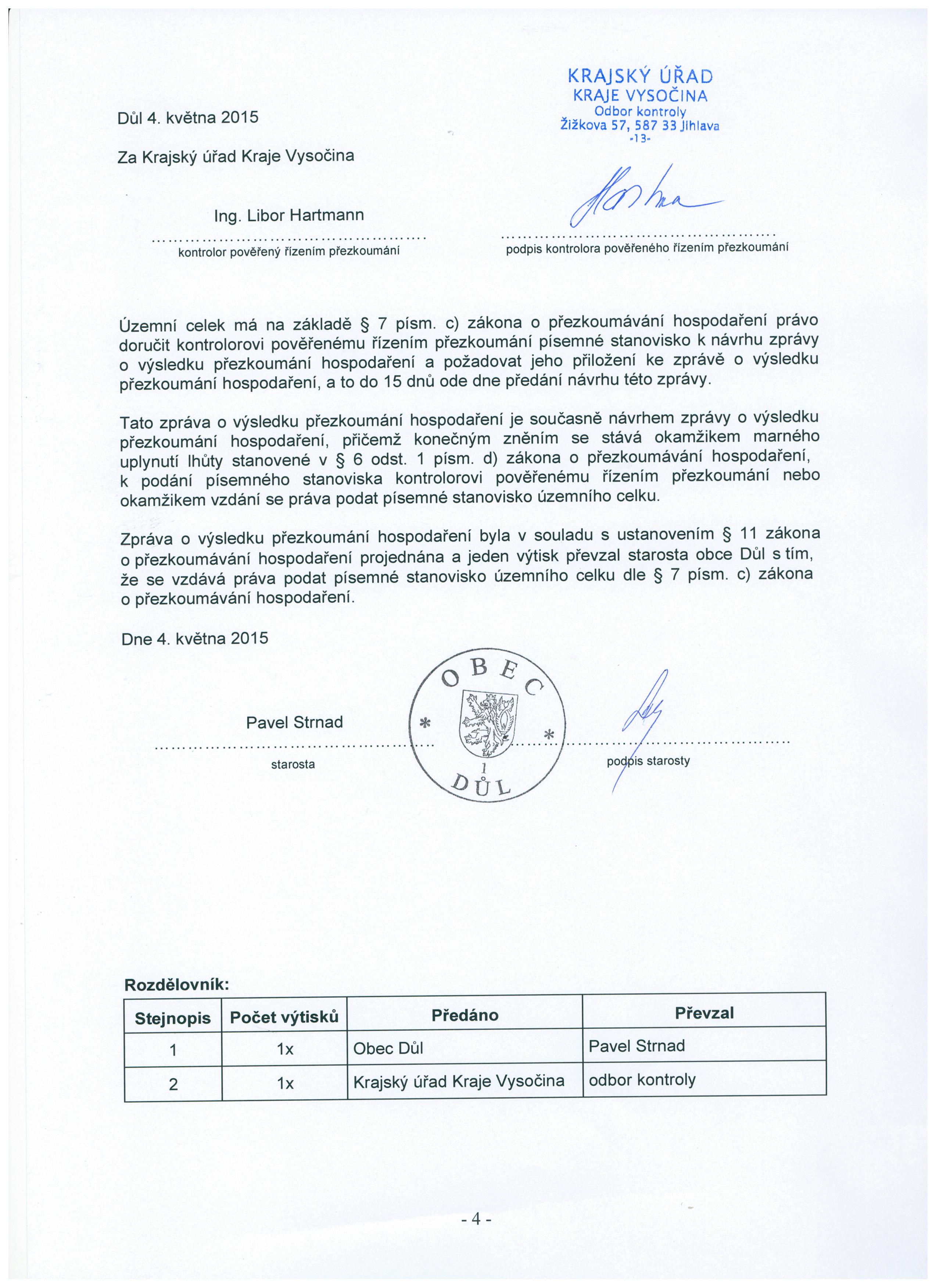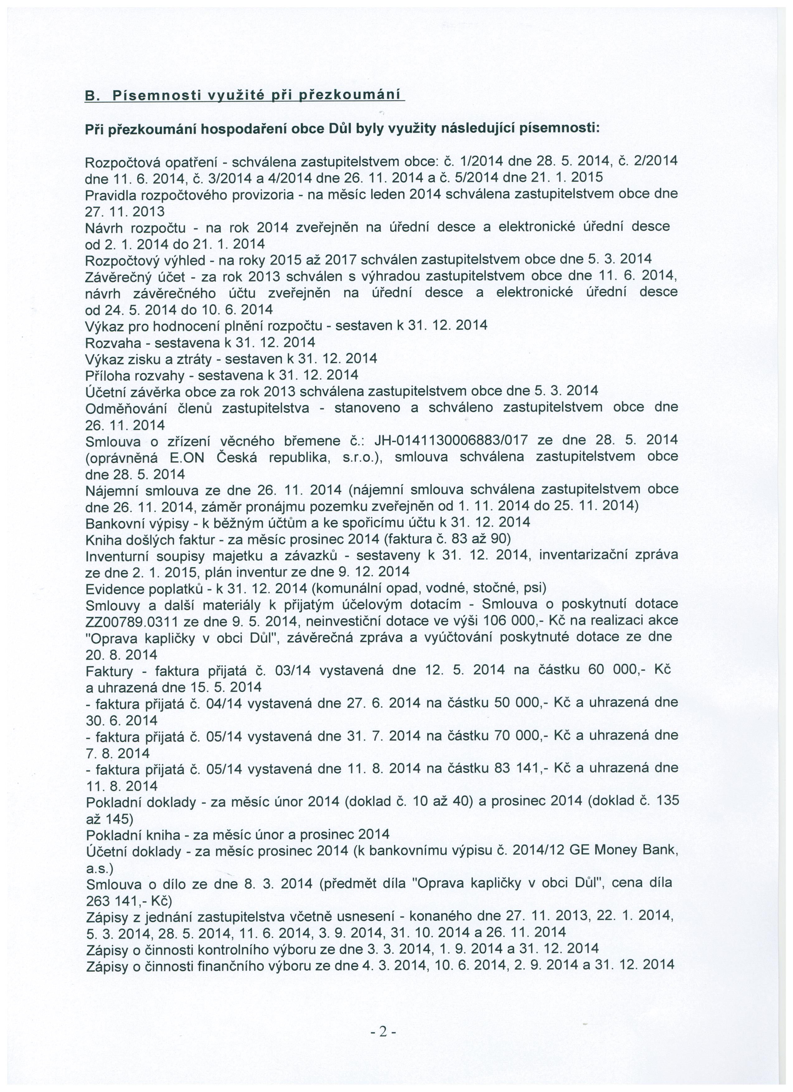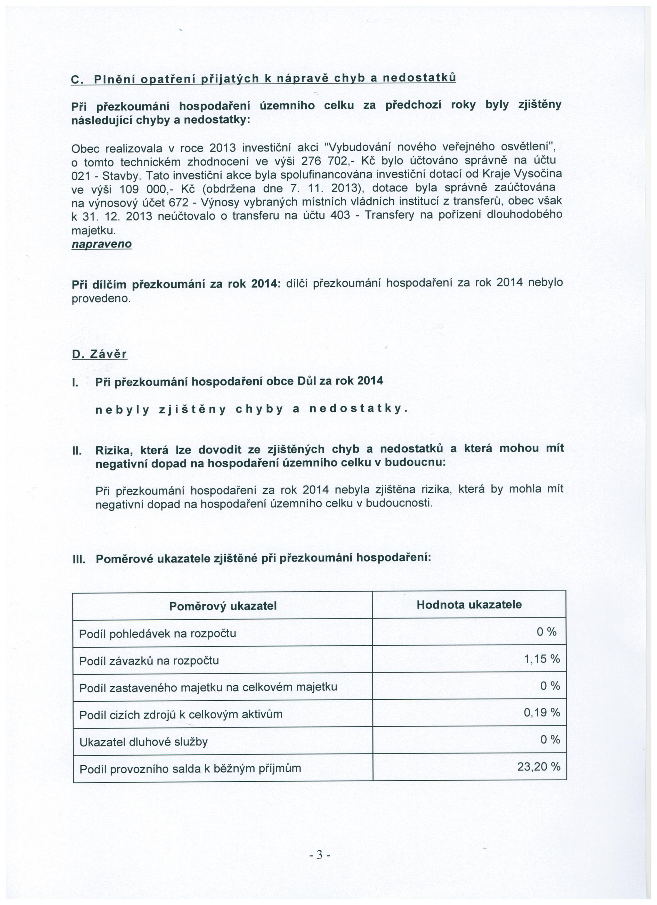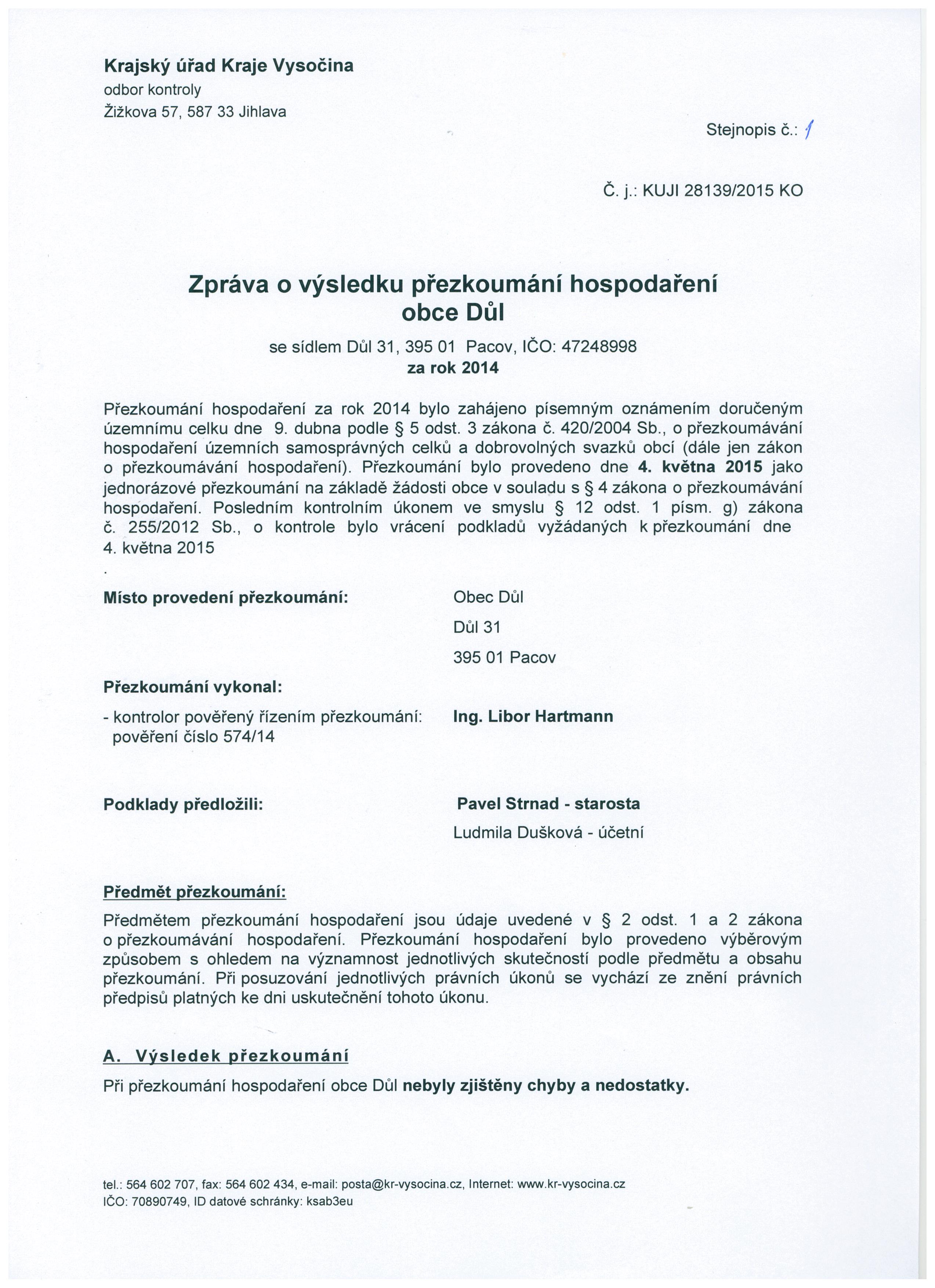 Zpráva o výsledku přezkoumání hospodaření obce Důl za rok 2014